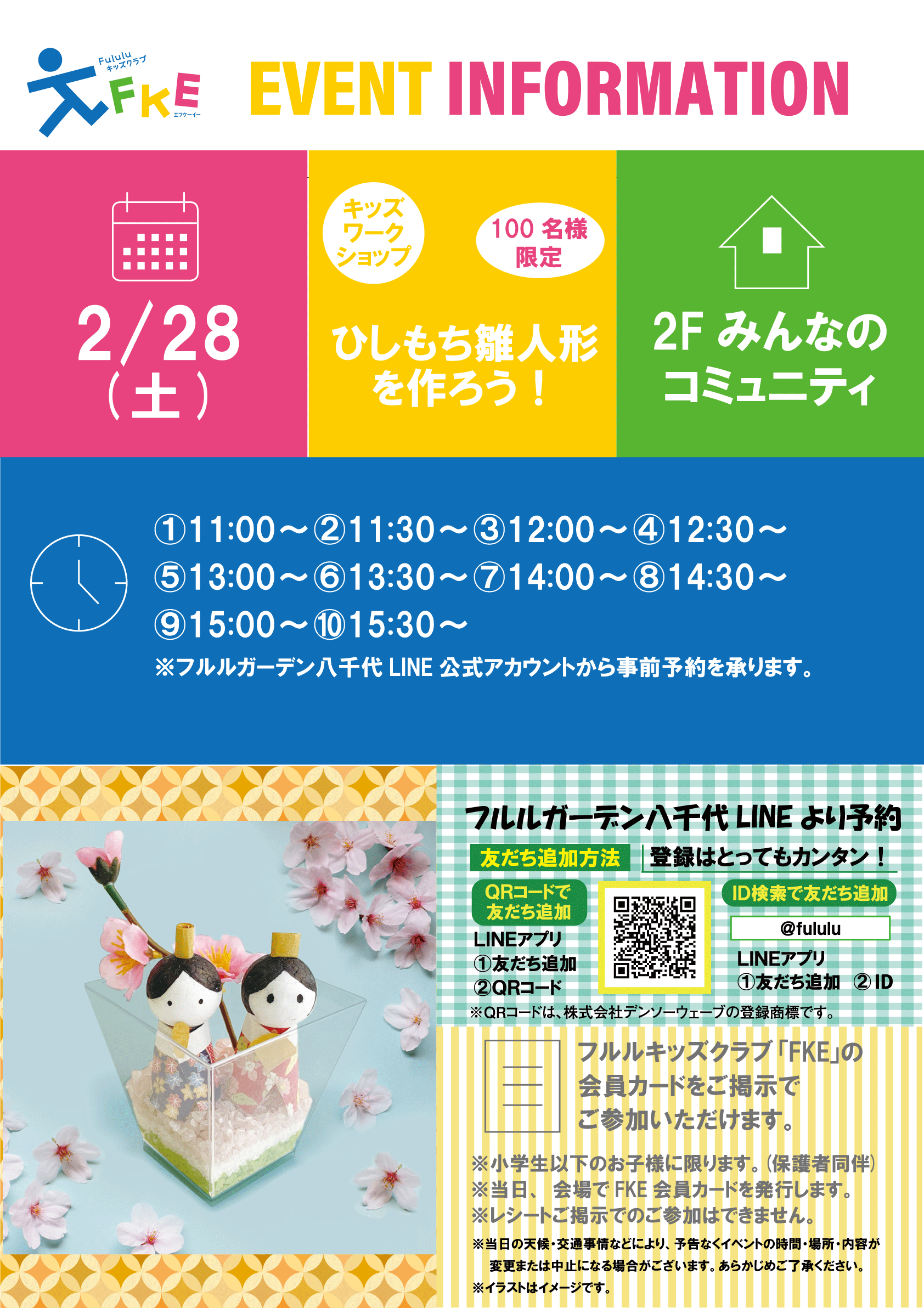 「フルルキッズクラブ「FKE」カード会員限定」キッズワークショップ『ひしもち雛人形を作ろう!』 |